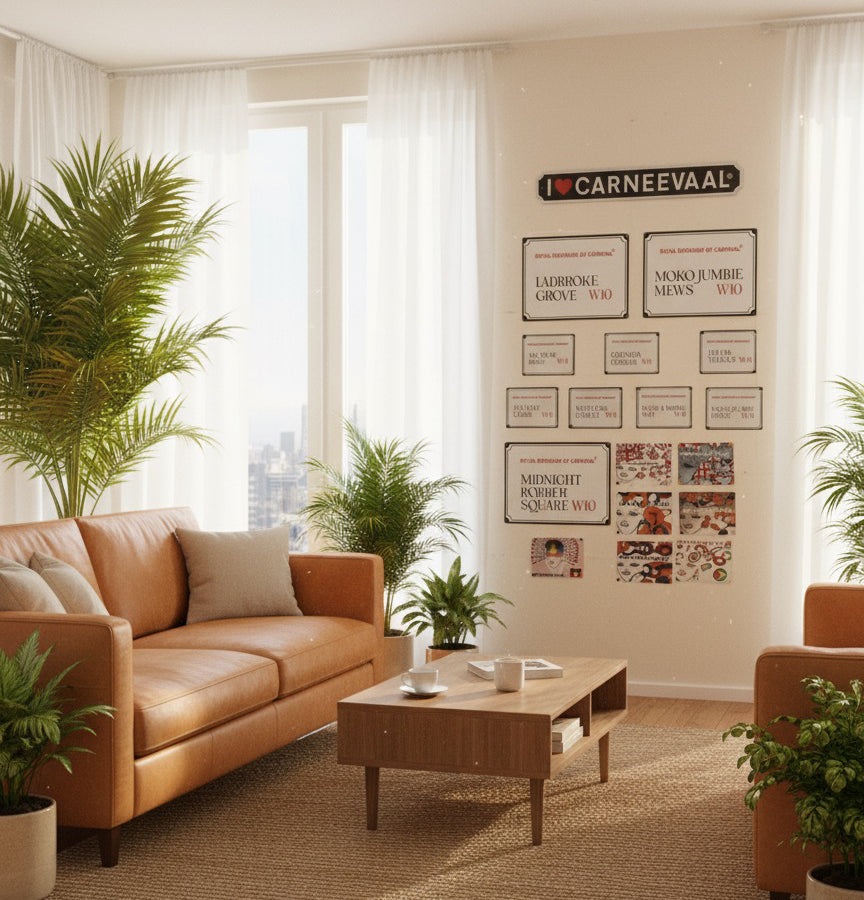 On route to seeking out unique picture frames, an opportunity to create wooden street signs and tee shirts incorporating Caribbean and British culture materialised.