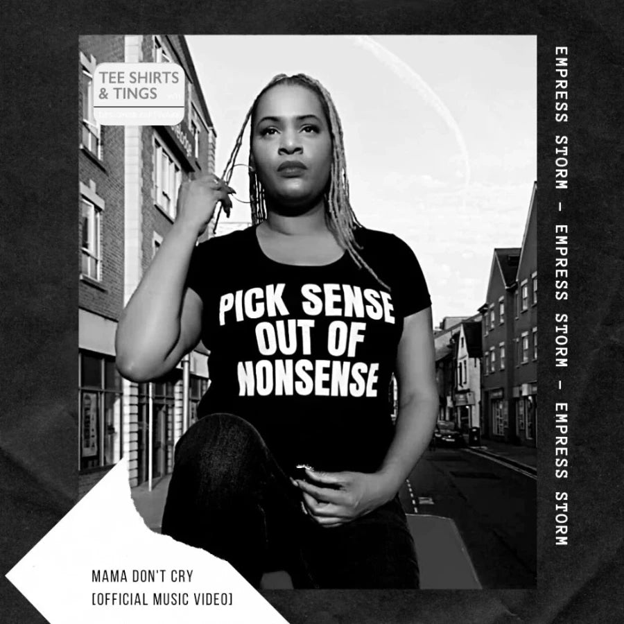 Explore Empress Storm's - Mama Don't Cry [Official Video 2020] - ©The cool Caribbean saying - 'Pick Sense Out of Nonsense' printed on a black 100% organic cotton women's scoop-neck and flattering fit teeshirt was previously styled by Reggae Recording Artiste, Empress Storm. See the new style in our women’s section.
